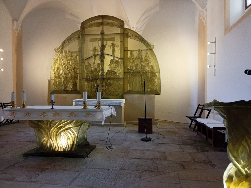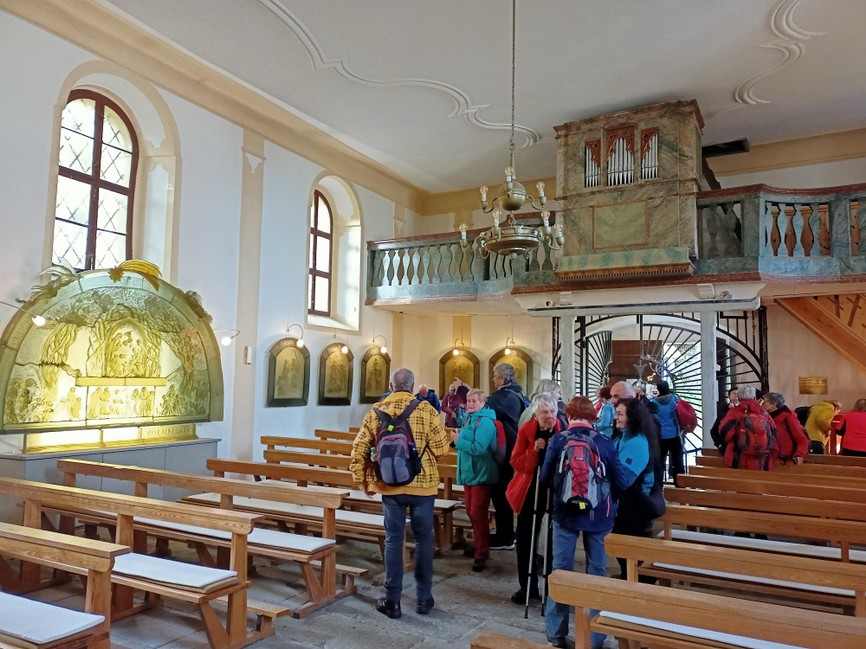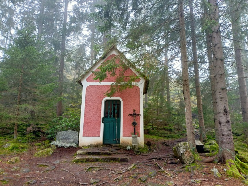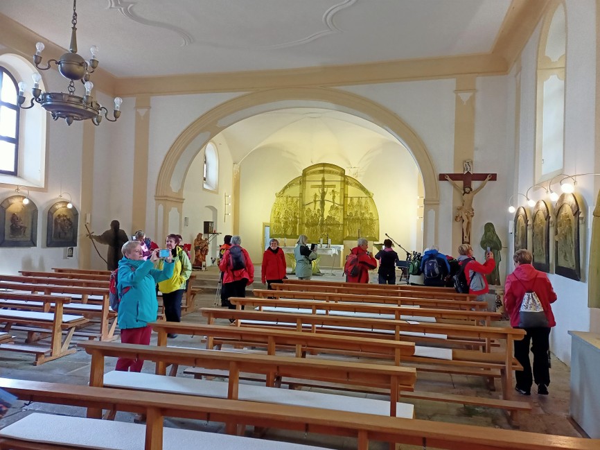 Busem Hartmanice. V Dobré Vodě - kostel sv. Vintíře se skl. oltářem. Pěšky po M zn na rozc. Pustina, Březník,
