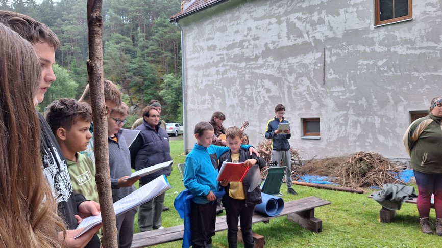 Já jsem byla pozvána na slavnostní závěrečný táborový oheň. Byla tam úžasná atmosféra. Dozvěděla jsem se např., že nyní se neplní tzv. „Bobříky“, které známe z našich mladých let, ale „Vltavíny“, jejichž název je odvozen od názvu oddílu TOM Vltavíni. Oheň byl opravdu slavnostní, zpívaly se písničky za doprovodu několika kytar. Děti hodnotily tábor a všichni velice chválili kuchařky, které i přes problémy s vodou, vždy uvařily výborné jídlo.